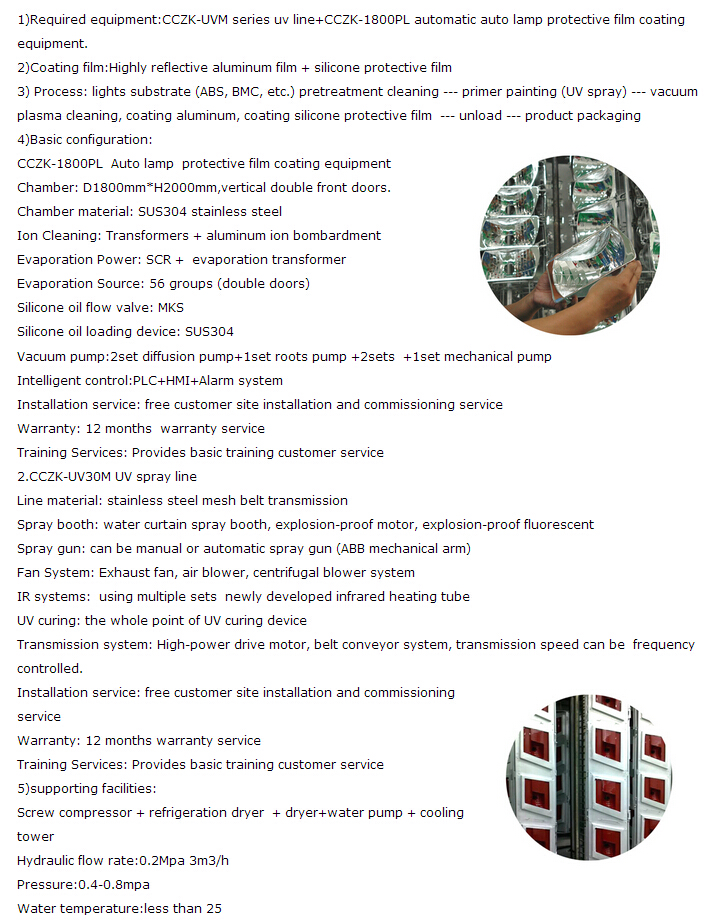 UV vacuum coating needs of cosmetics caps, switch panels and heels