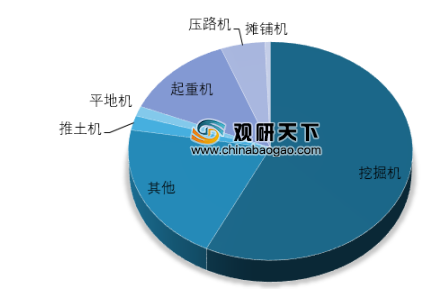 从市场结构来看,挖掘机为工程机械中的明星产品,占据市场绝对主流地位,2017年销量占比为57.22%;其次为起重机,占比12.94%;压路机和推土机销量略低,分别占比5.18%和2.14%。四种产品合计占比77.47%。